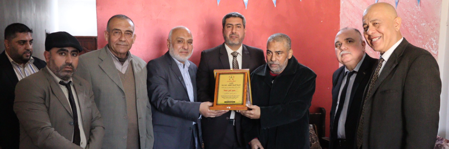 مدير التربية والتعليم في شمال غزة أ. جواد صالحة، يكرم المربي الفاضل رئيس قسم الشكاوى أ. سميح مليحة في منزله لبلوغه سن العطاء.