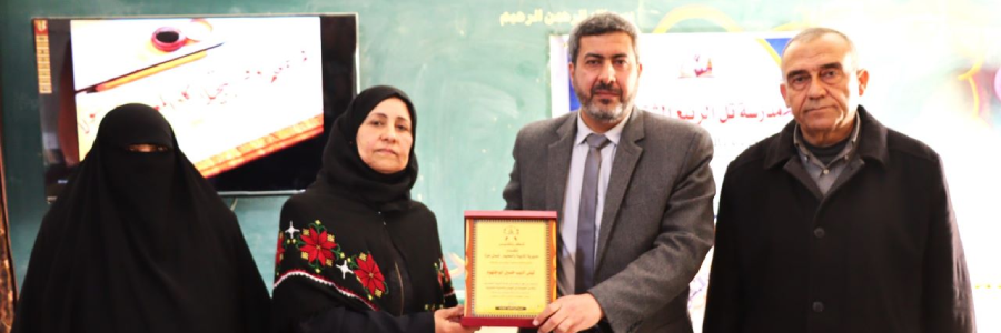 جاء ذلك خلال الحفل التكريمي الذي أقامته مدرستها بحضور مدير التربية والتعليم أ. جواد صالحة، ومدير الدائرة الفنية أ. موسى شهاب، ورئيس مجلس أولياء الأمور بالمدرسة أ. شريف، ومديرة المدرسة أ. نهى غانم، وثلة من معلمات المدرسة، وذوي المحتفى بها.