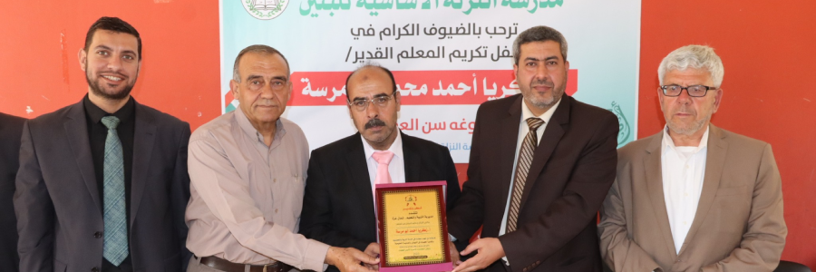 كرّمت مديرية التربية والتعليم في شمال غزة، المعلم الفاضل زكريا أحمد أبو مرسة، من مدرسة النزلة الأساسية للبنين، لبلوغه سن العطاء بعد رحلة حافلة بخدمة الطلبة والنهوض بالعملية التعليمية.