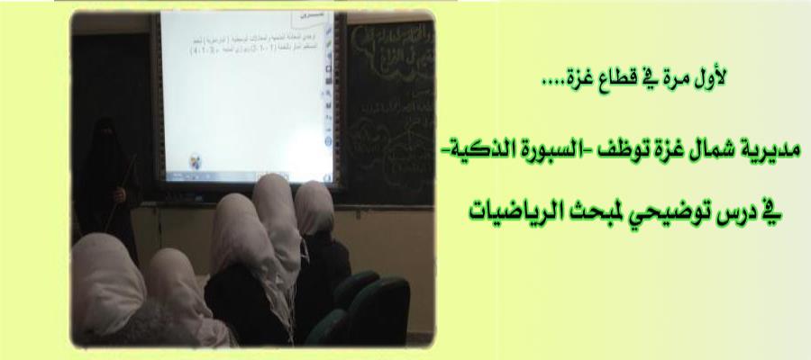 نفذت مديرية التربية والتعليم في شمال غزة اليوم درسا توضيحيا في مبحث الرياضيات للصف الحادي عشر "علمي" باستخدام تقنية السبورة الذكية، وذلك بمدرسة بيت حانون بيت حانون الثانوية للبنات، حيث يعد هذا الدرس الأول من نوعه على مستوى مديريات القطاع الذي تستخدم فيه "السبورة الذكية" في مبحث الرياضيات.