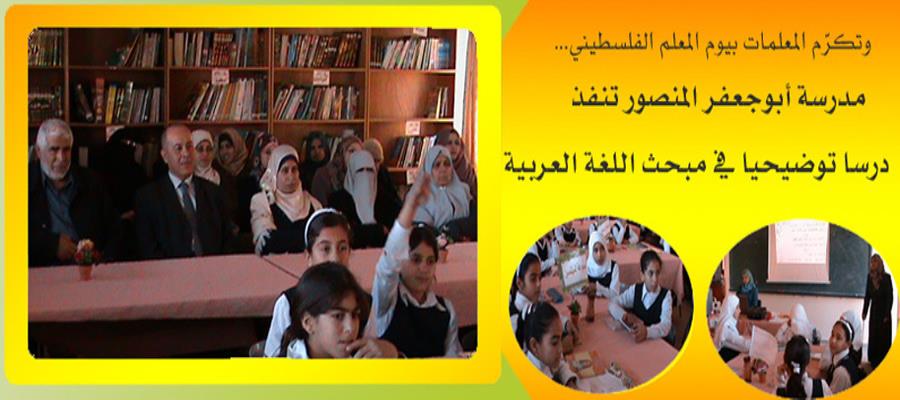 نفذت مدرسة أبوجعفر المنصور الأساسية "أ" للبنات من مديرية التربية والتعليم في شمال غزة اليوم، درسا توضيحيا في مبحث اللغة العربية للصف السادس الأساسي بعنوان "المفعول المطلق". وحضر الدرس الذي نفذته المعلمة سعاد حمدي عمر، مدير التربية والتعليم أ.مدحت قاسم، ورئيس قسم الإشراف التربوي أ.عبد العزيز فارس، ورئيس قسم العلاقات العامة والإعلام التربوي أ.إسماعيل البياري، ومديرة المدرسة أ.سائدة العمري وعدد من معلمات المبحث على مستوى المديرية. وأعرب أ.قاسم عن إعجابه بأداء المعلمة "عمر"، حيث استخدمت العديد من الأساليب التعليمية الحديثة والممتعة التي تساعد على ترسيخ وتثبيت المادة التعليمية في أذهان الطالبات، مثل استخدام "المهرج" في نقل المعلومة. كما وأشاد مدير التربية والتعليم بتميز مدرسة أبوجعفر المنصور إدارة ومعلمات وطالبات، معتبرا إياها من المدارس النموذجية على مستوى المديرية. وتطرق أ.قاسم إلى دور المعلم الفلسطيني في خدمة المجتمع وتنميته، مقدما التهنئة لكافة المعلمات لمناسبة يوم المعلم الفلسطيني. من جهته أشار أ.فارس إلى أهمية الدروس التوضيحية في تبادل الخبرات بين المعلمين بما يساهم في تطوير العملية التعليمية والارتقاء بها من خلال اتباع أساليب تربوية حديثة تواكب التطور المستمر الذي يشهده الحقل التربوي. وثمّن أ.فارس دور المشرفين التربويين في تعزيز دور المعلمين وحثهم على الإبداع والتميز وتفجير طاقاتهم الإبداعية، مؤكدا أن عام التعليم الفلسطيني شهد نقلة نوعية في مختلف مجالات العملية التعليمية بما فيها مجال تنفيذ الدروس التوضيحية. بدورها توجهت مديرة المدرسة بالشكر الجزيل للمعلمة منفذة الدرس، مشيدة بأدائها الرائع والمميز في نقل المعلومة وتعزيزها لدى الطالبات، داعيةً إلى ضرورة تطبيق الأساليب التربوية الحديثة في العملية التعليمية بما يساهم في الارتقاء بالواقع التربوي والانتقال من الجوانب الروتينية إلى المراحل الإبداعية. وفي ختام الدرس تم توزيع الهدايا التذكارية على كافة المعلمات بالمدرسة لمناسبة يوم المعلم الفلسطيني.
