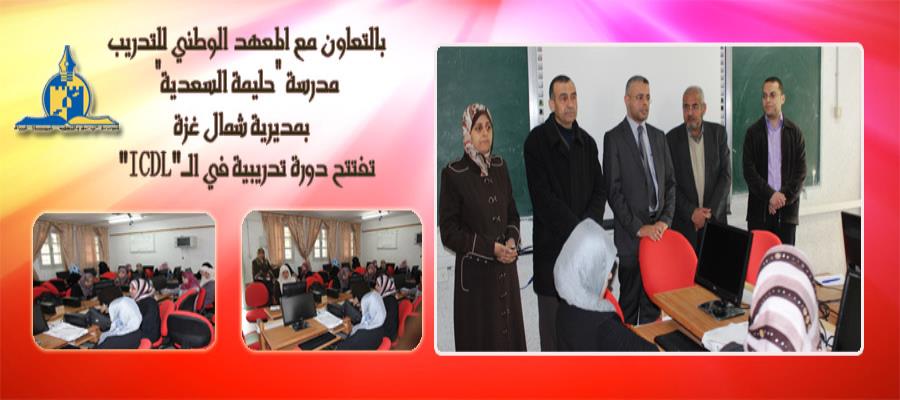 افتتحت مدرسة حليمة السعدية الأساسية "أ" للبنات، بمديرية التربية والتعليم في شمال غزة، وبالتعاون مع المعهد الوطني للتدريب، اليوم دورة تدريبية في رخصة قيادة الحاسوب "ICDL" خاصة بمعلمات المدرسة.