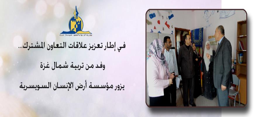 زار وفد تربوي رفيع المستوى من مديرية التربية والتعليم في شمال غزة، اليوم، مؤسسة أرض الإنسان السويسرية، وذلك في إطار التعاون المشترك بين المديرية والمؤسسة بما يخدم العملية التعليمية.