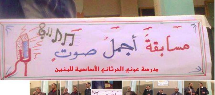انطلقت بفضل الله اليوم مسابقة تنافسية بين طلاب المدرسة بعنوان مسابقة أجمل صوت بين الطلاب المبدعين أصحاب المواهب المميزة بالنشيد وقد أعلن عن تلك المسابقة المرشد التربوي / محمد اسليم حيث بين أهمية الاهتمام بأصحاب المواهب من الطلاب لتنمية تلك المواهب وقد شكر بدوره مدير المدرسة / معين البزم لجنة الارشاد بالمدرسة لدورها الفاعل في رعاية تلك مسابقات والاهتمام بالطلبة الموهوبين من أصحاب الاصوات الجميلة مبينا ان هناك لجنة تحكيم سيتم اللجوء اليها لفرز صاحب أجمل صوت .