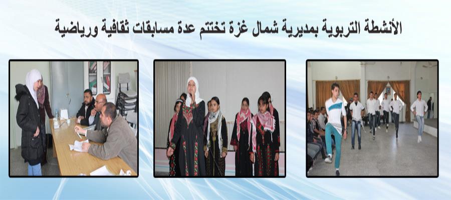 اختتم قسم الأنشطة التربوية بمديرية التربية والتعليم في شمال غزة، عدة مسابقات ثقافية ورياضية، وذلك في سياق الخطة السنوية العامة للأنشطة التربوية الرامية إلى الارتقاء بقدرات الطلبة واكتشاف مواهبهم والعمل على تنميتها.
