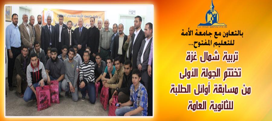 اختتمت مديرية التربية والتعليم في شمال غزة، وبالتعاون مع جامعة الأمة للتعليم المفتوح،الجولة الأولى من مسابقة أوائل الطلبة في الثانوية العامة (بنين) للفرعين العلمي والعلوم الإنسانية، والتي يشرف على إعدادها وتحكيمها ثلة من المشرفين التربويين بالمديرية.
