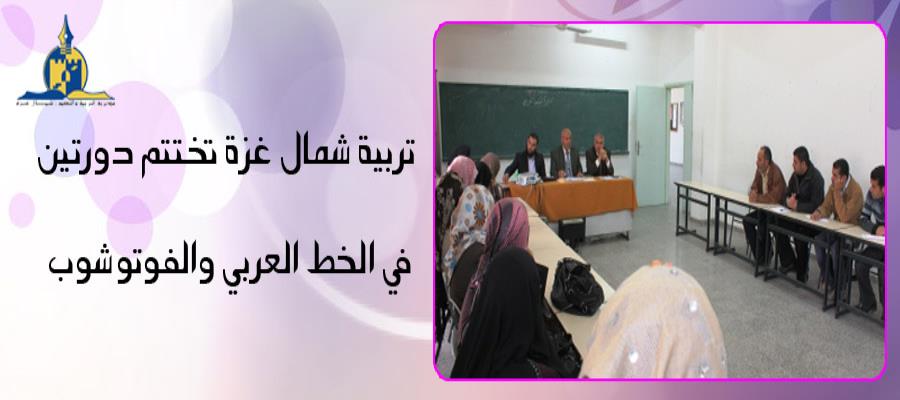 اختتمت مديرية التربية والتعليم في شمال غزة، (قسم الإشراف التربوي)، دورتين تدريبيتين للمعلمين في التصميم على برنامج الـ"فوتوشوب" والخط العربي، وذلك في سياق سعي المديرية الدؤوب للارتقاء بقدرات المعلمين وتطوير مهاراتهم المهنية والتربوية بما يخدم العملية التعليمية.