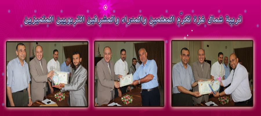 كرّمت مديرية التربية والتعليم في شمال غزة، المعلمين ومدراء المدارس والمشرفين التربويين والمدارس المتميزة خلال العام الدراسي الحالي، وذلك في احتفال أقيم في قاعة الانتفاضة بالمديرية.