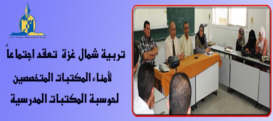 عقدت مديرية التربية والتعليم في شمال غزة، اجتماعاً لأمناء المكتبات المدرسية بالمديرية، وذلك للتباحث في أحد جوانب المهام الموكلة لهم والمتعلقة بحوسبة المكتبات الكترونيا.