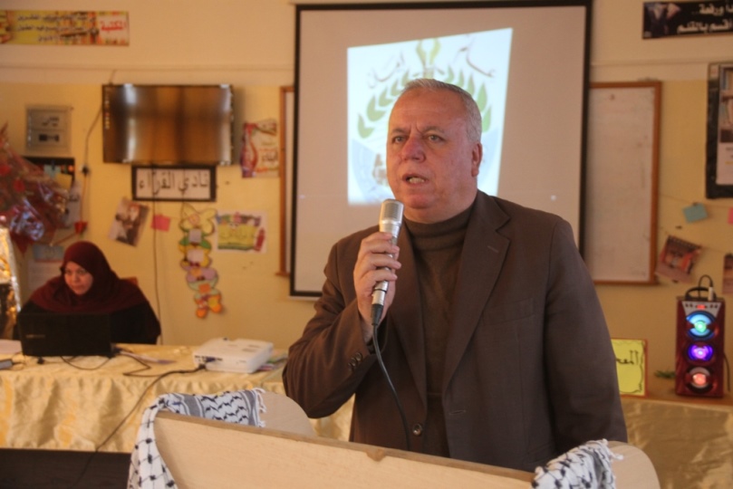 وفي كلمته أكد أ. أبو حصيرة على ضرورة الاعتناء باللغة العربية والمحافظة عليها من خلال غرسها في نفوس النشء، مشدداً على أن الله عز وجل تكفّل بحفظ هذه اللغة العربية لأنها لغة القرآن الكريم ولغة أهل الجنة.