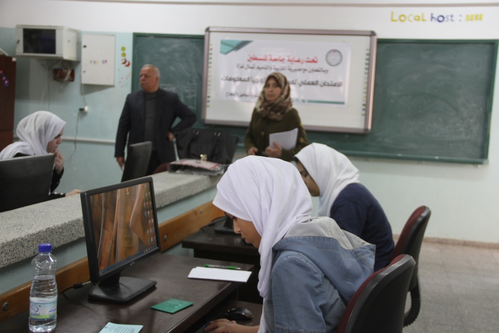 تفقد مدير التربية والتعليم في شمال غزة، أ. محمود أبو حصيرة، صباح اليوم، سير امتحان مبحث التكنولوجيا "الشق العملي" للصف الثاني عشر الفرع العلمي، للاطمئنان على أحوال الطلبة والوقوف على احتياجاتهم.