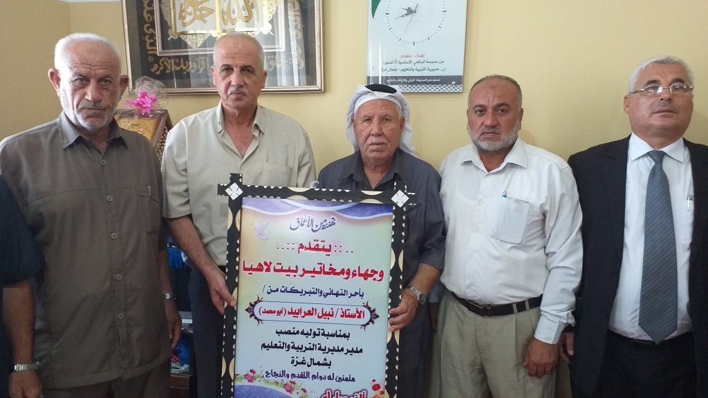 مخاتير و وجهاء شمال غزة يباركون للمدير "أ. نبيل العرابيد" بتوليه منصبه الجديد