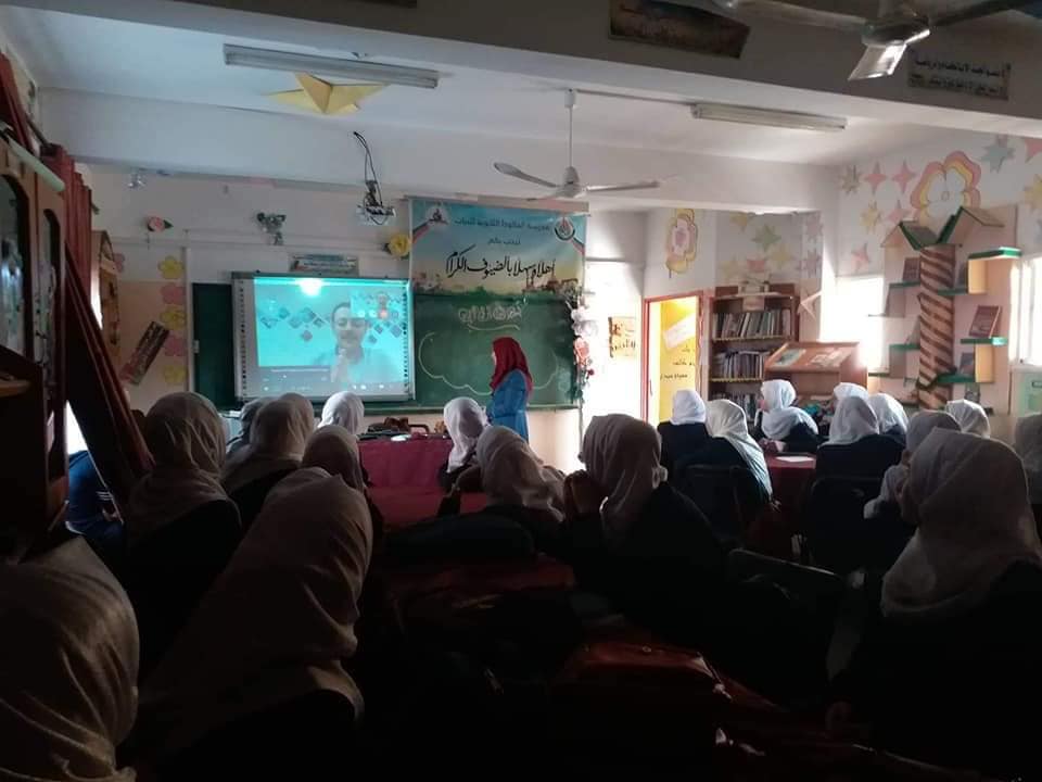 بدورها تحدث أ. البرعي عن هذا الحدث الذي يتم فيه ربط جميع الصفوف عبر الفضاء الأزرق على مدار ٤٨ ساعة سنويا، و يتم تسجيلها من خلال مايكروسوفت العالمية.