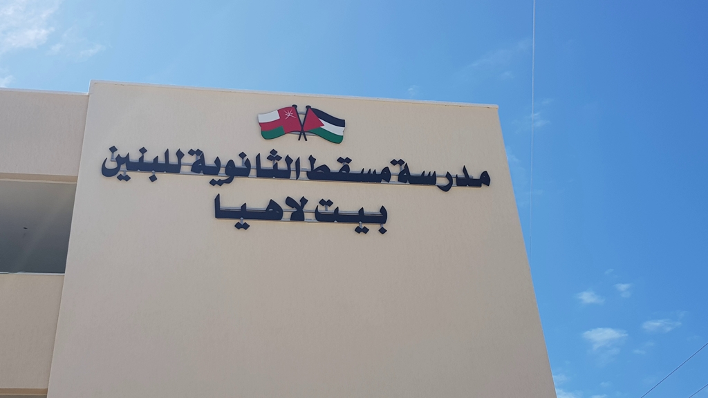 ويسجّل لسلطنة عمان الشقيقة أنها قدمت دعماً كبيراً للعملية التعليمية في قطاع غزة، من خلال بناء عدة مدارس، تحمل اسم العاصمة العمانية "مسقط" في كل من غزة، وخانيونس، والبريج، ورفح، وأخيراً بيت لاهيا.